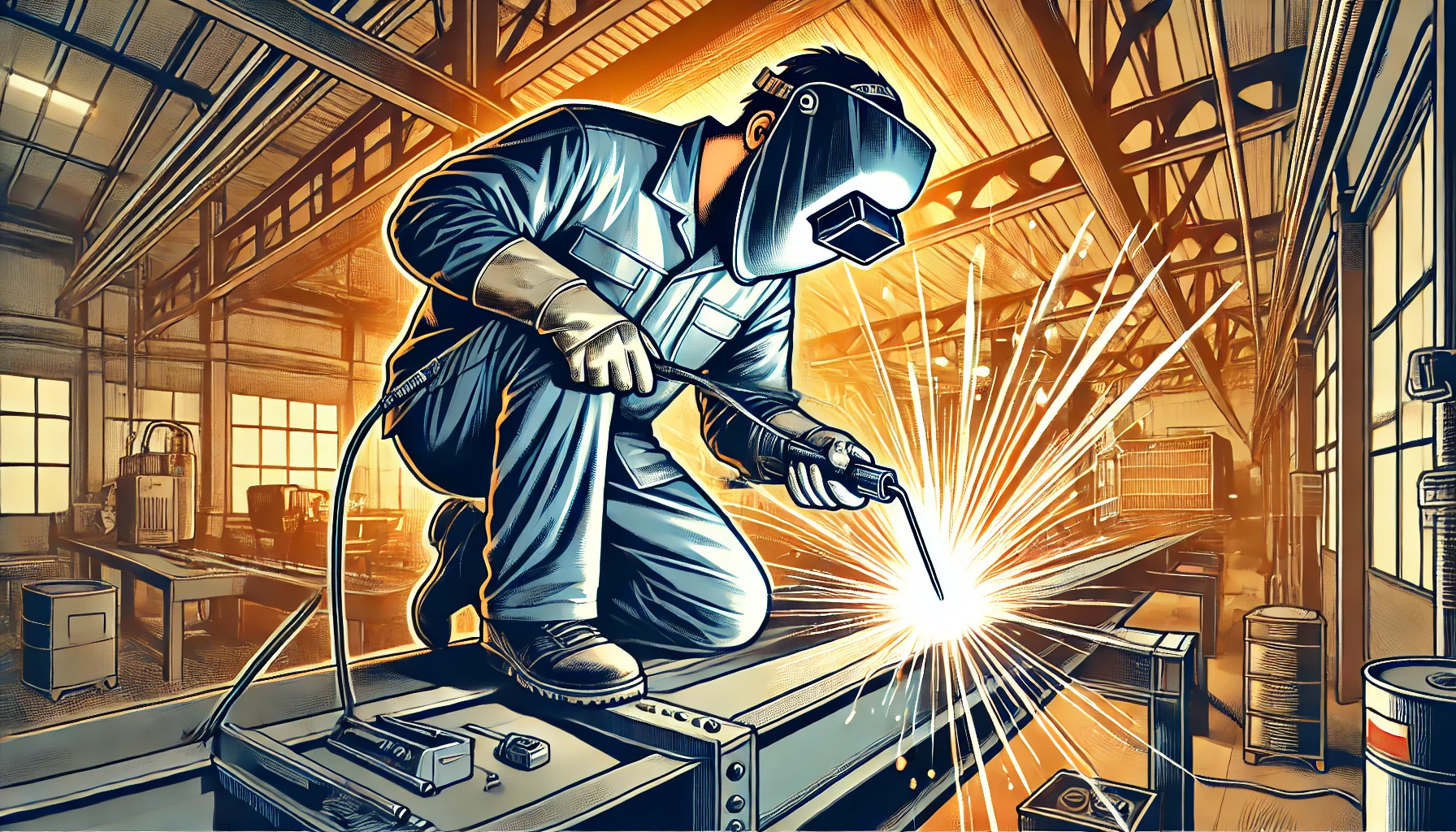- 피복아크용접(SMAW): 전극봉을 사용해 강력한 전류로 금속을 용해하여 접합하는 기술.